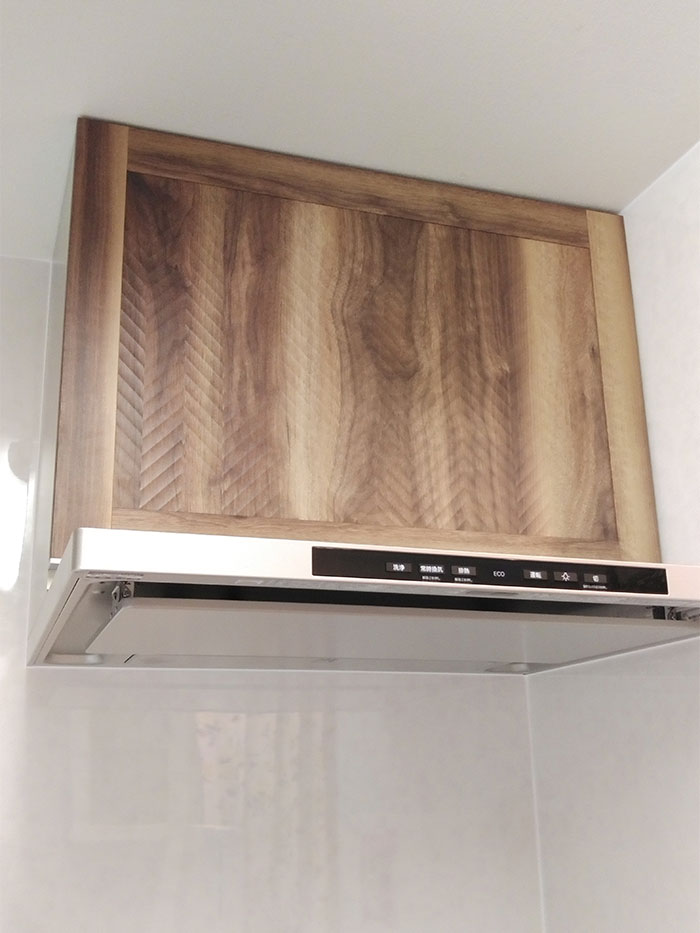 既設の収納とワインラックはそのまま残し、最新の自動水栓やお掃除機能がついたレンジフードなどを取り入れました。